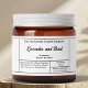 A label for soap or cosmetics products with a white background and black text. Features space for your company name, ingredients, business information, and more. This label measures 8.25 inches by 1.75 inches (209 mm by 44 mm) and is suitable for jars with a diameter of 2.6 inches (66 mm) or more and a label height area of at least 2 inches (50mm). Most 8 oz (240 ml) and 16 oz (480 ml) jars fit this description, but check the jar specifications to be sure. This label makes a great choice for packaging beauty products that require larger labels like sugar scrubs, body butters, and thick lotions and creams.