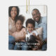 This festive Christmas ornament features a cute rustic white deer overlay and classic Merry Christmas typography with your name, photo, and year.