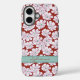 Rustic White Flowers Sketch Red Teal Custom Name Case-Mate iPhone Case