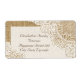 Elegant white lace on burlap shabby chic wedding label featuring white lace on linen natural burlap or hessian that covers two corners of a white rectangle with beige burlap border. Text in brown. Note that lace and burlap are all “printed on” and not real fabric. This elegant, shabby chic sophisticated and romantic design with a rustic essence is part of a wedding set and is perfect for a country chic or western spring, summer or fall/autumn wedding with a neutral color palette.