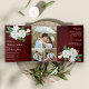 Rustic White Magnolia Floral Burgundy Wedding Tri-Fold Invitation