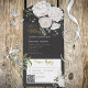 Rustic White Peonies Floral on Black QR Code All In One Invitation