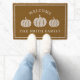 Custom-designed autumn fall outdoor welcome mat featuring rustic farmhouse style white pumpkins design with personalized family name.