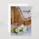 Pair the charming Rustic White Tulips Barn Wedding RSVP Card with it's matching marriage invitations to create a coordinated nuptial stationery set. This casual yet classy custom western ranch style r.s.v.p. card features a quaint floral photograph of a bouquet of white tulip flower blossoms, white pearl necklace, white bridal veil and a vintage lace trimmed white linen handkerchief with a brown barn wood background.
