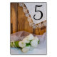 Add some charm to the decor of your rural farm or ranch style bridal shower barn party or marriage reception with the pretty Rustic White Tulips Country Wedding Table Numbers. These casual yet classy custom western wedding theme table number cards feature a floral photograph of a bouquet of white tulip flower blossoms, white pearl necklace, white bridal veil and a vintage lace trimmed linen handkerchief with a brown barn wood background.