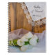 The charming Rustic White Tulips Country Wedding Spiral Notebook can be personalized with the names of the bride and groom and their informal farm marriage ceremony date create a one of a kind guest book or advice book for the newlyweds. This casual yet classy customized ranch style nuptial note book features a quaint floral photograph of a bouquet of white tulip flower blossoms, white pearl necklace, white bridal veil and a vintage lace trimmed linen handkerchief with a brown barn wood background.