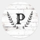 Rustic White Wood Shabby Chic Laurel Wedding Classic Round Sticker
