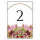 This design features a rustic wild flower bouquet. A simple gold circle frame encircles the text. The rustic pink floral color tones compliment the greenery of the leaves. The gold tones tie everything together to create a rustic country woodland garden feel. Elegant wedding table number design with modern elements. Matching wedding invitations and other stationery items are also available. Customize the number and purchase each tables number individually according to how many table numbers you need.
