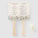 This is a rustic bohemian wedding program hand fan. The design features elegant and summery delicate wildflower florals in pretty shades of blue, terracotta, pink, rust, purple and yellow on a creamy ivory background. The butterflies and bees add the finishing whimsical and pretty touch.