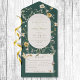 ALSO AVAILABLE WITH A QR CODE, WITH TWO DINNER OPTIONS OR WITHOUT DINNER OPTIONS. This design features a soft wildflower frame around a cream oval on an emerald green background. Personalized All-In-One invitations are a unique combination of both a beautifully printed custom invitation with an easy to tear off perforated RSVP postcard. And they are so easy to use! You simply fold, then seal the back flap with the three included clear stickers, and mail. And when your guests receive your custom invite, they just tear the perforated RSVP Card off and drop it back in the mail to you!