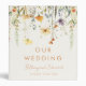 This design combines elegance and whimsy, pairing minimal modern text with a row of delicate watercolor wildflowers perfect for boho-inspired weddings.
