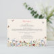 Bohemian, rustic and modern, this is a wildflower wedding details enclosure card. The design features elegant and summery delicate wildflower florals in pretty shades of blue, terracotta, pink, rust, purple and yellow on a creamy ivory background. The butterflies and bees add the finishing whimsical and pretty touch.