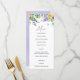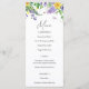 This is a rustic wildflower and greenery themed wedding menu. The design features a wreath made with a variety of spring wildflowers and greenery, perfect for a casual boho spring or summer outside wedding.