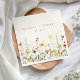 This design combines elegance and whimsy, pairing minimal modern text with a row of delicate watercolor wildflowers perfect for boho-inspired weddings.