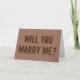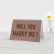This marriage proposal card features rustic colors (like browns) and the important question, "WILL YOU MARRY ME?". The inside message can be personalized.