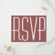 RSVP in long elegant, trendy font in reddish rustic wine and white.