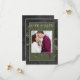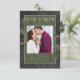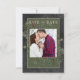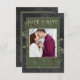 Introducing our enchanting winter wedding save the date card, where timeless elegance meets the beauty of the season. The rich black background, artfully distressed with soft white accents, sets a captivating tone for your special day. In the dark sage green text area, your personal image will shine, surrounded by a delicate cream frame that adds a touch of refinement. Embrace the spirit of winter with a breathtaking frame of lush greenery, featuring holly adorned with rich red berries, mistletoe with its delicate white berries, and the timeless allure of green pine. This winter wonderland-inspired design captures the essence of the season and invites your guests to celebrate your love in a setting that exudes natural grace and festive charm. With this design, you are sure to set the stage for a celebration filled with love and joy. Embrace the magic of winter and let your wedding be a reflection of the beauty that this season brings. This save the date card is part of the Rustic Winter Berries & Pine Black wedding suite, created by Simply Farmhouse Press.
