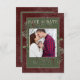 Introducing our enchanting winter wedding save the date card, where timeless elegance meets the beauty of the season. The rich burgundy background, artfully distressed with soft white accents, sets a captivating tone for your special day. In the dark sage green text area, your personal image will shine, surrounded by a delicate cream frame that adds a touch of refinement. Embrace the spirit of winter with a breathtaking frame of lush greenery, featuring holly adorned with rich red berries, mistletoe with its delicate white berries, and the timeless allure of green pine. This winter wonderland-inspired design captures the essence of the season and invites your guests to celebrate your love in a setting that exudes natural grace and festive charm. With this design, you are sure to set the stage for a celebration filled with love and joy. Embrace the magic of winter and let your wedding be a reflection of the beauty that this season brings. This save the date card is part of the Rustic Winter Berries & Pine Burgundy wedding suite, created by Simply Farmhouse Press.