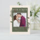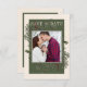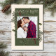 Introducing our enchanting winter wedding save the date card, where timeless elegance meets the beauty of the season. The rich cream background, artfully distressed with soft white accents, sets a captivating tone for your special day. In the dark sage green text area, your personal image will shine, surrounded by a delicate sage green frame that adds a touch of refinement. Embrace the spirit of winter with a breathtaking frame of lush greenery, featuring holly adorned with rich red berries, mistletoe with its delicate white berries, and the timeless allure of green pine. This winter wonderland-inspired design captures the essence of the season and invites your guests to celebrate your love in a setting that exudes natural grace and festive charm. With this design, you are sure to set the stage for a celebration filled with love and joy. Embrace the magic of winter and let your wedding be a reflection of the beauty that this season brings. This save the date card is part of the Rustic Winter Berries & Pine Cream wedding suite, created by Simply Farmhouse Press.