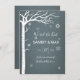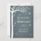 Rustic wedding announcement features a side boarder of a white birch tree that frames your wedding ceremony elopement details. The background is a unique cool speckled charcoal grey and white snowflakes. Your marriage details are set in an elegant traditional sans serif and hand lettered script type. Perfect for fall, autumn, and winter rustic theme weddings. To see more designs like this visit VG Invites at www.zazzle.com/vginvites