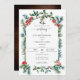 Rustic Winter Botanical Frame Green Red Wedding Invitation