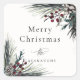Rustic watercolor winter forest boughs and berries, holiday sticker.