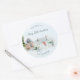Personalized with your family name, this sticker is ideal for adding a custom touch to your Christmas cards, holiday party favors, gift wrapping, or seasonal décor. The classic round design and soft color palette of blues, greens, and whites create a nostalgic feel that complements any rustic or vintage holiday theme.