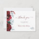 Rustic winter chic bridal shower stylish thank you horizontal card featuring burgundy flowers with light grey foliage border and a trendy elegant handwriting dark burgundy typography script.++++++++++++++ Easy to personalize with your text and signature! You can choose to customize it further changing fonts and colors of lettering.