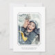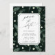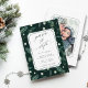 This wedding save the date invitation features your event details in chic green lettering with a ticket frame on a watercolor winter greenery pattern background and a photo on the back. For more advanced customization of this design, please click the BLUE DESIGN TOOL BUTTON to change the font, size, color, etc.