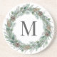 Rustic Winter Greenery Wreath Monogram Coaster