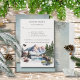 Rustic Winter Lodge in the Mountains RSVP is a beautiful matching enclosure card to the Rustic Winter Lodge in the Mountains Wedding Invitation. Log cabins and lodge on a mountain lake, surrounded by evergreen forest while moose, red fox and eagles look on. Coordinates with the Rustic Winter Lodge in the Mountains Collection.