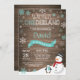 Rustic Winter Onederland 1st Birthday Invitation. Snowman and Penguin. Aqua Teal Turquoise and White Snowflake. First Birthday. Boy or Girl 1st Bday Invite. Rustic Wood Background. Black and White. For further customization, please click the "Customize it" button and use our design tool to modify this template.
