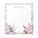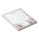 Rustic Farmhouse Blush Pink Flowers and Pinecones Notepad with customizable " from the desk of " and name templates. The border features a white wood texture and watercolor pink flowers, pine tree sprigs, and pinecones.