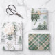 This rustic woodland Christmas wrapping paper set features 3 sheets of coordinating holiday patterns: whimsical watercolor pine trees, watercolor pine forest and mountain, and plaid.