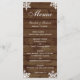 This Rustic Winter Wedding Barn Wood Snowflakes Menu card features a barn wood background with fresh, bright white snowflakes bordering the corners. Design is perfect for a rustic or country themed winter wedding. Easily add your own wedding details to personalize this rustic winter wedding menu card.
