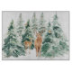 A beautiful watercolor winter woodland scene featuring deer and robins.
