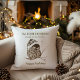 Cute, nature themed Holiday throw pillow featuring original artwork of a whimsical, sleeping owl wearing an old-fashioned nightcap with the greetings "OWL BE HOME FOR CHRISTMAS, if only in my dreams..." and "Happy Holidays" in gold lettering. Reverse side is a rustic winter white birch bark pattern.