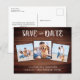 Save The Date! Announce your wedding to friends and family with these rustic wood, modern photo collage save the date cards. These budget wedding invitation postcards need to be mailed as oversized postcards so may incur standard postage fees but they don't need an envelope or a return address label. Customize with 3 of your favorite engagement photos, and personalize with names, wedding date, location, and website. Add any other information on the back. These unique save the cards will make a lasting impression, your guests will make sure to save the date! COPYRIGHT © 2020 Judy Burrows, Black Dog Art - All Rights Reserved. Rustic Wood 3 Photo Budget Wedding Save The Date