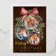 Rustic Wood 3 Photo Christmas Ornaments Elegant Foil Holiday Card