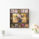 Rustic Wood 9 Photo Collage Quote Gold Numbers Square Wall Clock