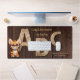 A rustic design desk mat featuring wood A B and C letters on a wood background. The kitten is optional, but of course great for any cat lover! A beautiful desk mat for a teacher.