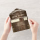 Elegant dark wood background surrounded by leaves and hanging party lights. These wedding invitation includes the wedding info and RSVP postcard that your guests tear off and send. Envelopes are not needed. Perfect for a Summer, Autumn, Spring, Boho, or outdoor wedding!