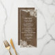 Rustic modern outdoors wedding menu design with elegant lace elements at the top and bottom on a printed faux wood texture background. An elegant and stylish rustic design, perfect for outdoor or vintage themed weddings! This design is a part of a wedding suite "Rustic Wood and Lace". Matching items are available.