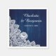 These minimalist, yet elegant rustic wedding paper napkins featuring vintage white floral lace on a navy blue wood background are perfect for your navy blue rustic country/barn wedding party.