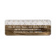Rustic chic wedding return address labels, done with a weathered wood grain look and pretty graphics of white lace, at the top. White text is ready to personalize with your information. Lovely finishing touch to our Rustic Wood and Lace wedding invitations and thank you cards. Matching products available.