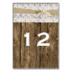 Rustic Wood and Lace Wedding Table Number