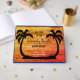 Tropical beach house welcome guest book with a rustic wood background and black palm trees silhouette.Personalize with family name.Elegant guest book for guests to sign in at your family beach house housewarming.