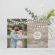 Rustic wood and string lights Save the date card