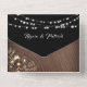 Make a lasting impression with this elegant, modern rose gold and black rustic wood all-in-one wedding invitation. Featuring a stunning combination of faux gold floral lace, simple calligraphy script, and twinkling string lights, this invitation beautifully blends rustic charm with sophisticated style. The back showcases a custom photo of the couple, adding a personal touch to your special day.