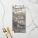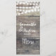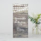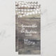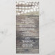 Rustic wood and string lights wedding dinner menu. Custom vintage gray wood background decorated with string of lights. Perfect wedding invite for wedding with night lights wedding theme, barn theme, garden theme, outdoor wedding with twinkle lights.